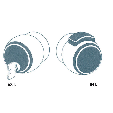 Empunyadura externa sense polsador. Obertura només amb clau. El polsador intern sempre queda lliure.