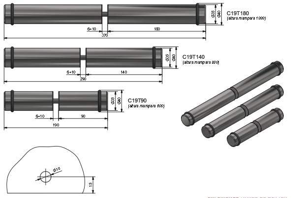 PEU MAMPARA MÒBIL (180MM X 2) ANTILLISCANT PER A VIDRE TEMPERAT DE 6 A 10MM REF.C19T180BL