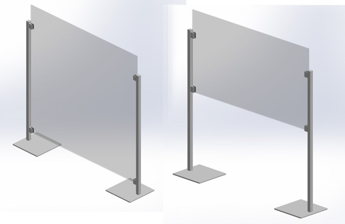 Base: 300x300mm amb suports regulables ocults per a compensar irregularitats. Muntant: tub 30x30mm i altura de 1200mm. Pes: 10 kg/un. Ample màxim entre muntants: 1200mm. Altura màxima de sòl a vidre: 1800mm. Opcional amb rodes. Pinça inferior a 100mm de sòl o a 700mm. Inclou 4 pinces (la inferior amb topall).
