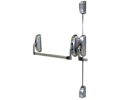 CERRADURA ANTIP NICO - DOBLE PUERTA EN MARCO, UNA PUERTA CON CIERRE LATERAL Y OTRA SEMIFIJA CON CIERRE SUPERIOR E INFERIOR M S CERRADERO EL CTRICO - En todas las referencias de antip nicos en acabado NEGRO, las barras verticales y horizontales siempre son inox mate.