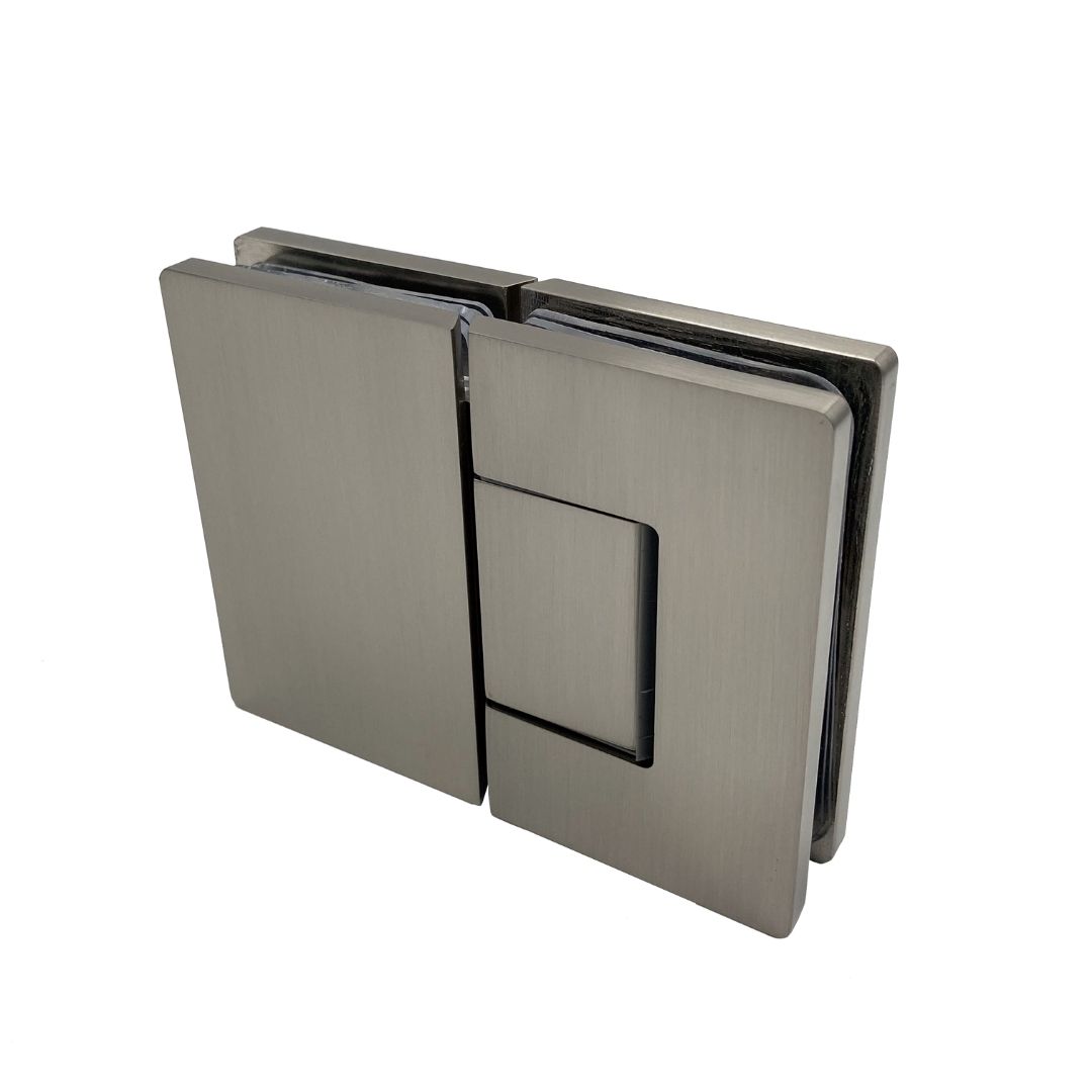 Bisagra con retenci n mec nica y regulaci n de la alineaci n de la puerta en su posici n de cierre. Bisagras fabricadas por estampaci n en lat n Torniller a totalmente oculta Ejes de giro y torniller a fabricadas en acero inoxidable Juntas de apriete al vidrio fabricadas en PE Con retenci n a 0 y 90 Regulaci n del punto 0 siempre garantizada Dise o que reduce las franquicias entre pared-vidrio o vidrio-vidrio Tapas embellecedoras - incluida la base pared Testadas y garantizadas para una resistencia anti-corrosi n Grado 5. Testadas y garantizadas para 200.000 ciclos. Instalaci n impecable, r pida, ptima y f cil Carga m xima por unidad: 35 kg Para vidrios de 8 y 10 m/m