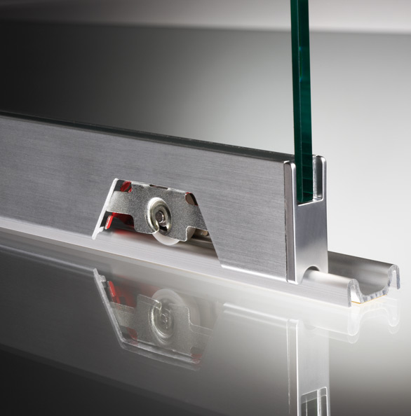 Peso m ximo con 2 carros: 25kg - Peso m ximo con 4 carros: 50 kg - SUPRA es un sistema universal de corredera para vidrios de 5, 6 y 8 mm. El flocado de calidad de los perfiles gu a, la tecnolog a avanzada del carro, la uni n segura entre el vidrio y el metal mediante perfiles de inserci n, y los amortiguadores de fin de carrera integrados de modo invisible, facilitan un funcionamiento suave y sin ruido de las puertas correderas de vidrio durante toda su vida til. Los ensayos de resistencia a largo plazo, demuestran la primac a de esta tecnolog a sobre los carros convencionales: incluso despu s de 40.000 desplazamientos, las puertas correderas no presentan ning n indicio de desgaste.