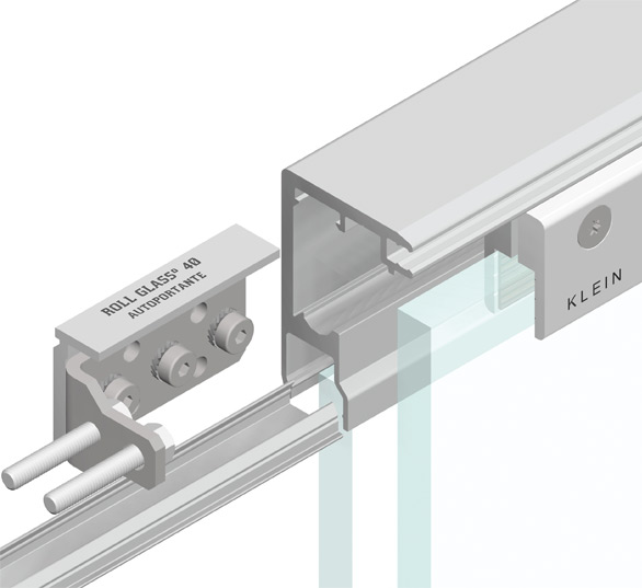Mecanismo para puertas correderas de vidrio, en aplicaciones donde no podemos fijar el perfil ni al techo, ni a una pared trasera. De este modo, la sujeci n queda entre paredes. Acepta una amplitud del hueco de hasta 2 metros, en vidrios de 8 10 mm, con un peso de hasta 40kg. Perfil superior de aluminio en acabado anodizado Silver Mariner. Se presenta en versi n BASIC donde se suministra un guiador intermedio para fijar al pavimento y otra versi n EXPERT con un perfil inferior para la hoja fija, un guiador intermedio y tope de apertura.