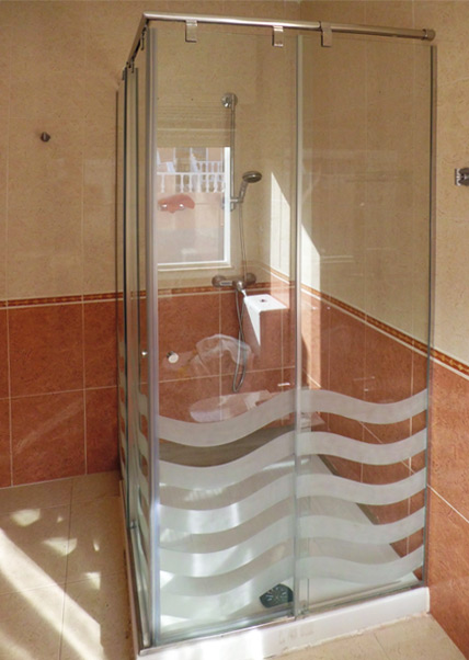 MAMPARA CORREDERA INOX EN NGULO A 90 -2 PUERTAS Y 2 FIJOS (1000X1000MM) 8/10MM REF.02730.K2IB