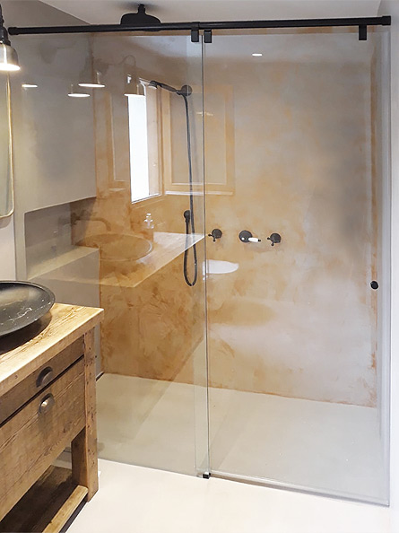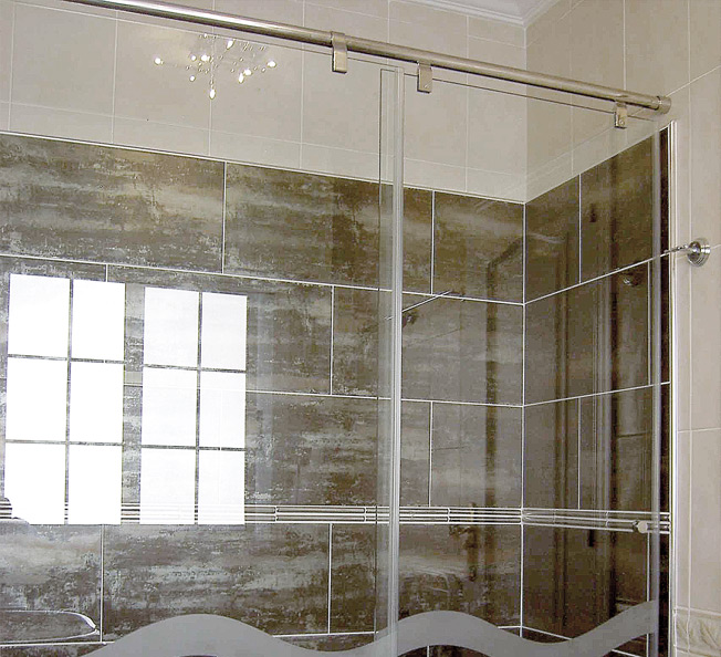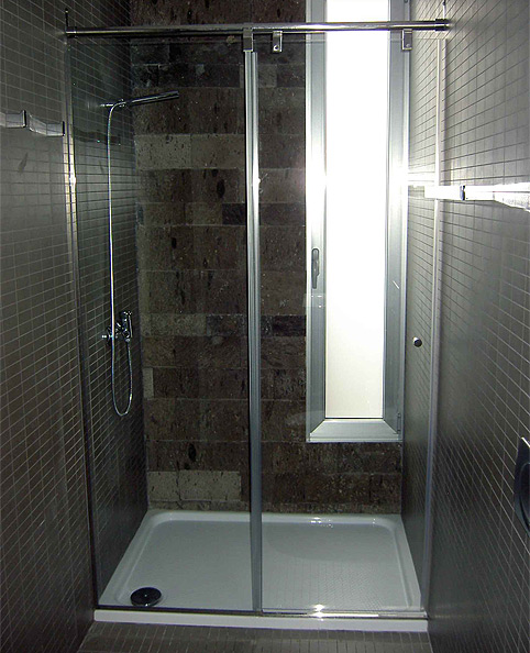 MAMPARA CORREDERA INOX ENTRE 2 PAREDES - 1 PUERTA Y 1 FIJO - 8/10MM REF.02730.K1IB