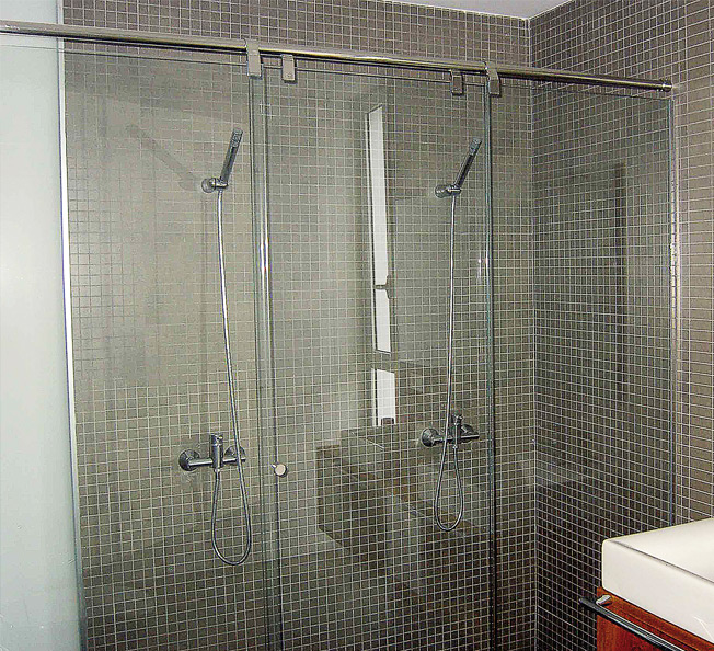 MAMPARA CORREDERA INOX ENTRE 2 PAREDES - 1 PUERTA Y 2 FIJOS - 8/10MM REF.02730.K6IB