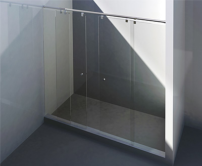 MAMPARA CORREDERA INOX ENTRE 2 PAREDES - 2 PUERTAS Y 2 FIJOS - 8/10MM REF.02730.K4IB
