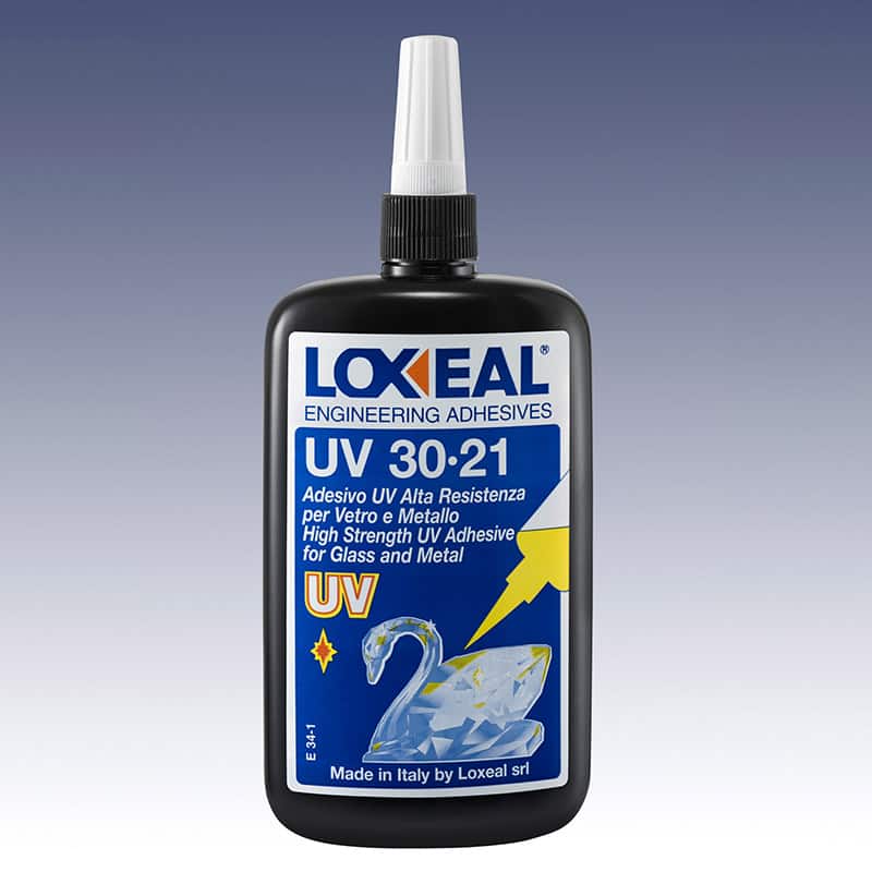 Adhesivo de curado UV que cura en pocos segundos. Indicado para el pegado de vidrio/vidrio y vidrio/metal. Por la buena tenacidad de la uni n es especialmente indicado en el sector de mobiliario de vidrio y cristal tanto en uniones a tope como el pegado de placas met licas al cristal