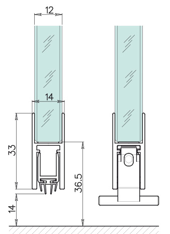 PERFIL CIERRE INFERIOR CORREDERA - VIDRIO 12MM - L:730MM REF.03390PB