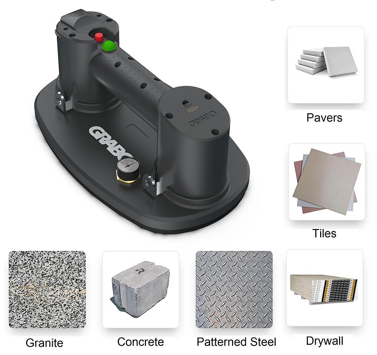 El Nemo GRABO es una herramienta revolucionaria que est cambiando la forma en que transportamos art culos pesados. Mediante el uso de la tecnolog a de aspiraci n el ctrica, esta herramienta port til, pero liviana, puede levantar hasta 170 Kilos. El uso de Nemo GRABO beneficia a cualquier industria que requiera levantar y mover objetos grandes o pesados. Estos son los materiales con los que puede trabajar Nemo GRABO: Vidrio. El GRABO es perfecto para un vidriero. Cart n laminado. Pl sticos de todo tipo. Madera, rugosa y lisa. Rieles. El GRABO no ve ning n desaf o en recoger metal con placa de diaman-te u otras superficies con patrones irregulares. Azulejos, superficies lisas y estampadas / irregulares.